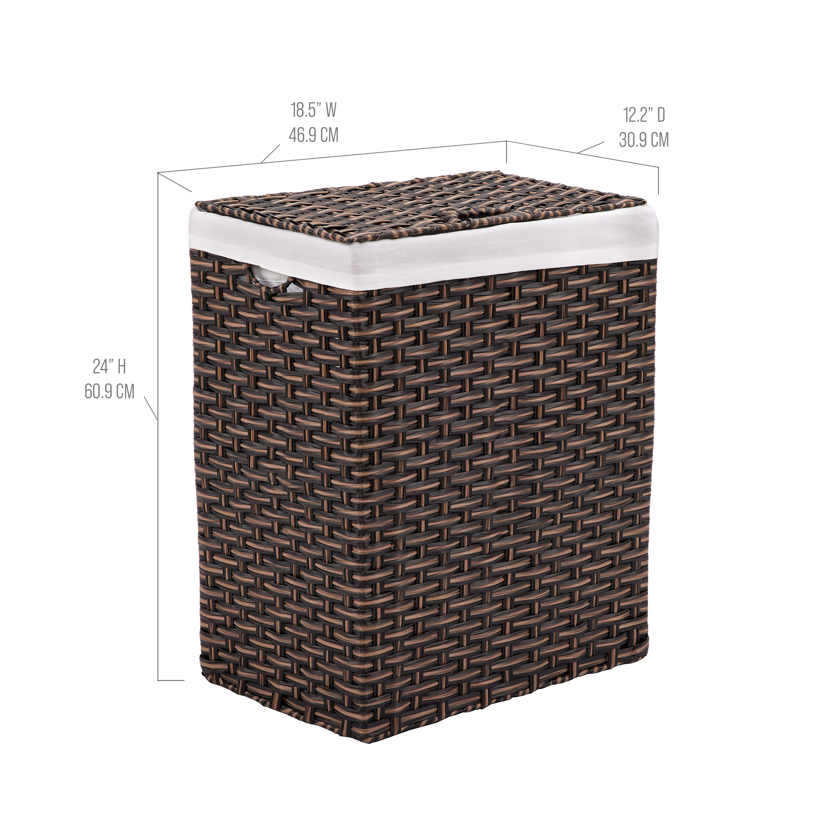 - Removable, machine-washable, canvas hamper liner with built-in handles